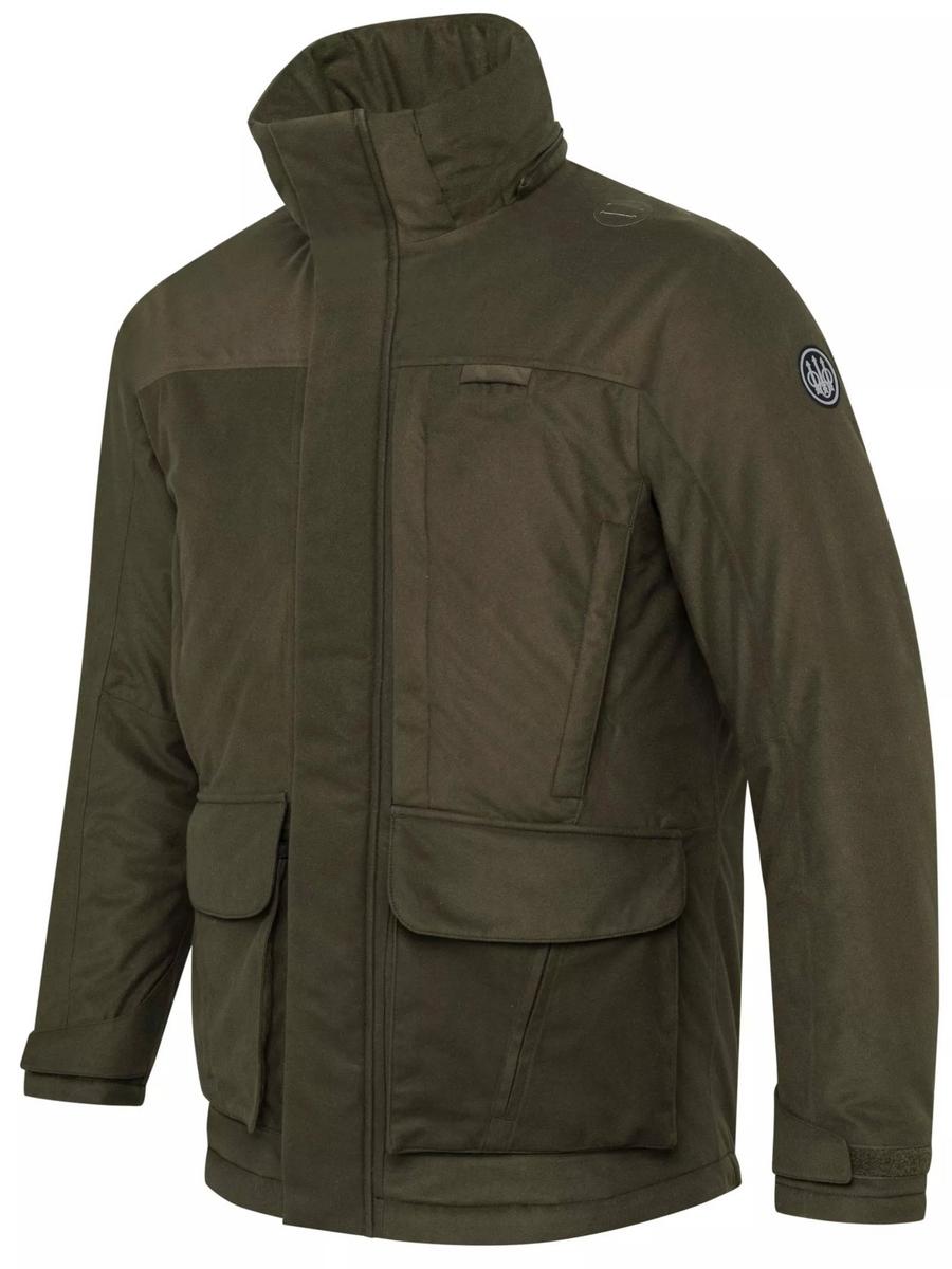 Removable, preformed 'Easy Movement' hood to ensure an unobstructed field of vision Soft microfibre collar lining SBS zip and press stud closure with storm flap Special radio pocket with antenna exit hole SBS zip handwarmer pockets Large front pockets with press stud and elastic cartridge holder Velcro-adjustable wrist Single-opening rear game pocket with SBS zip SBS zip inside pockets Adjustable drawstring hem Rubberized Beretta logo on left sleeve Fit: regular fit Suitable for temperatures from -15 °C to 0 °C