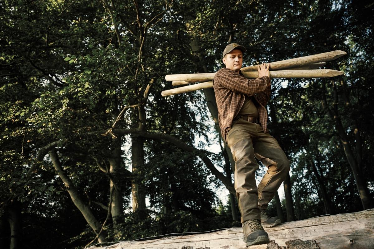 Whether you are out training your dog, cutting wood or on a driven hunt, the Outdoor Reinforced trousers are an ideal choice. The Outdoor Reinforced trousers are designed for medium-high levels of activity and offer more protection than the Outdoor Stretch trousers – but less than our Outdoor Membrane trousers. Parts of the Outdoor Reinforced trousers are made from a lightweight, low-noise nylon fabric that fits snugly and naturally follows every leg movement. But there are also large reinforced panels for wear protection. The trousers have four pockets: two on the thighs and two on the hips. When zipped up, a small piece of fabric covers the zip head, keeping it out of the way and preventing it from catching on anything. The stitching at the knees is designed to let you squat without overstretching the fabric. There are also belt loops at the waist. The trousers are extremely comfortable, with an elasticated waist and ankle adjustments, for a perfect fit. The Outdoor Reinforced trousers are fantastic for a variety of outdoor activities and are the ideal choice when you need optimum freedom of movement and wear-resistance.