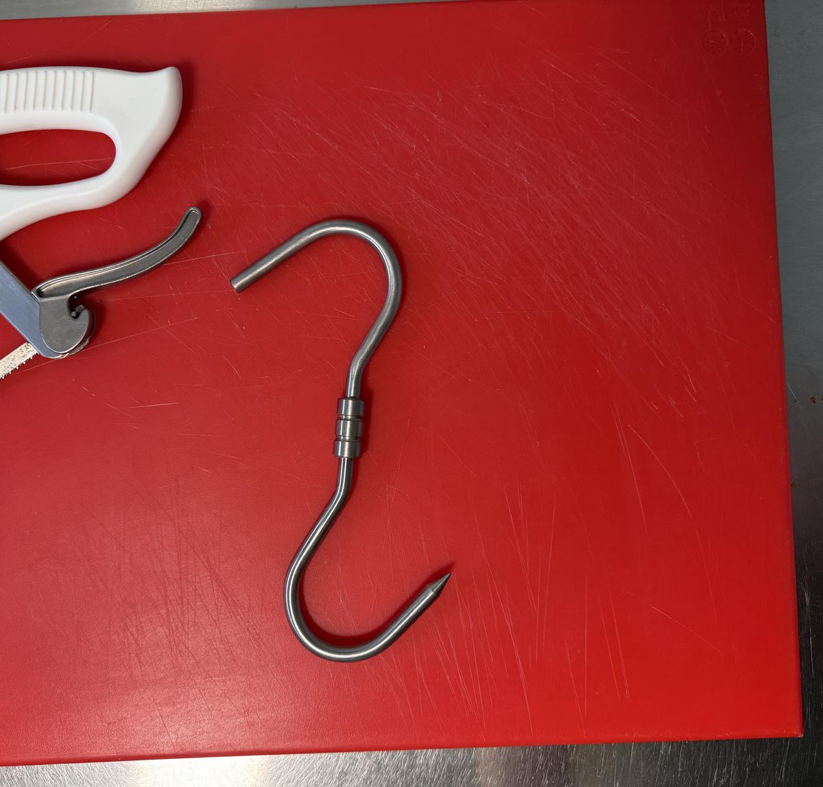 Crafted from high-grade stainless steel, it resists rust and corrosion even in damp or outdoor conditions, and it's easy to sanitise—making it suitable for use in professional butchery setups or home game larders. The classic S-shape provides secure and convenient hanging without the need for tools or permanent fixtures.