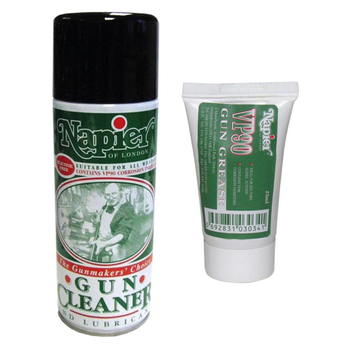 Two-in-One Gun Maintenance Set – Includes 1 x 300ml Napier Gun Cleaner Spray and 1 x 25ml Napier Gun Grease Tube for thorough cleaning and precision lubrication.