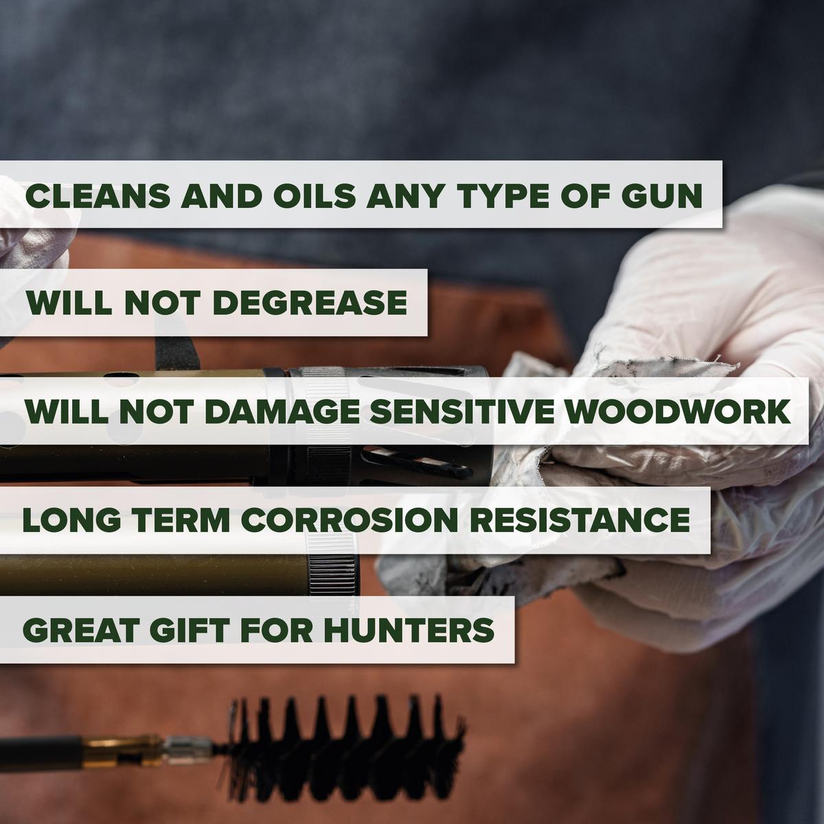 Safe for All Firearms – Suitable for rifles, shotguns, pistols, and airguns, and safe for use on wooden stocks, synthetic materials, and metal finishes.