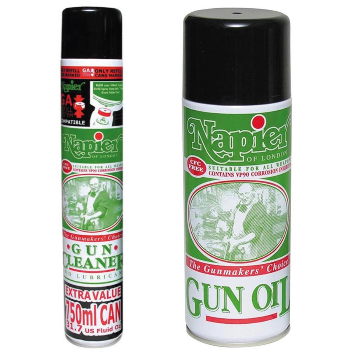 Complete Gun Maintenance Kit – Includes 1 x 750ml Napier Gun Cleaner Spray and 1 x 300ml Napier Gun Oil Aerosol for total firearm care.