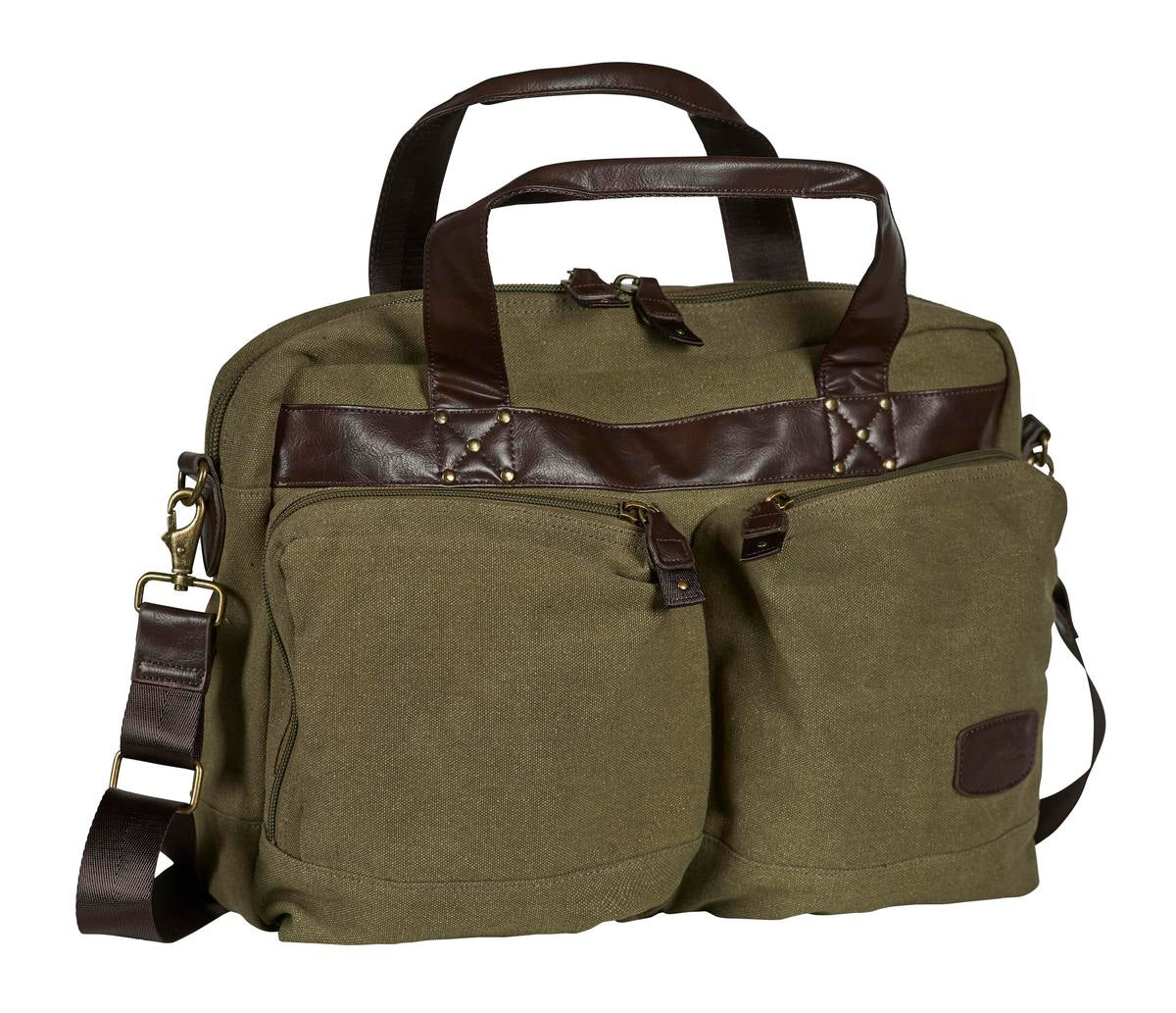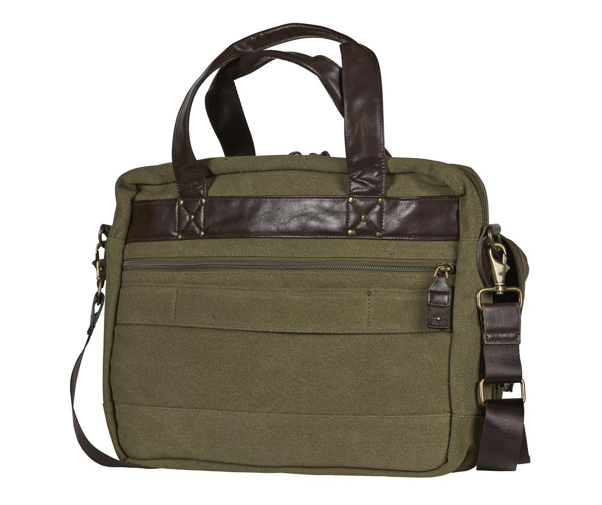 Breifcase with padded 15" laptop compartment. Made in strong canvas reinforced with PU straps. Two external pockets with smart storage space inside. Shoulder strap is included. Main comparment size 40*30*10 cm.