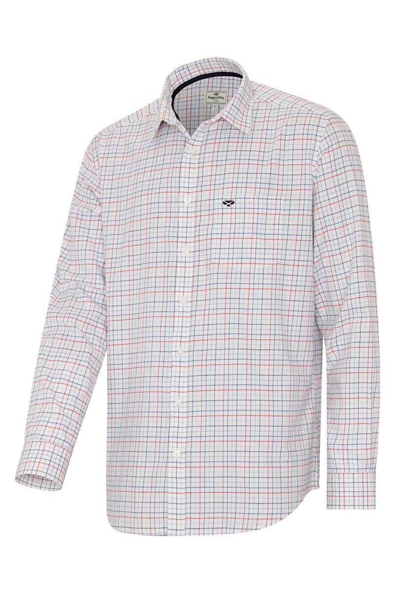 Crafted for all-day comfort, the Hoggs of Fife Callum Fine Twill Check Shirt is an effortlessly versatile addition to your country wear wardrobe. Experience the exceptional craftsmanship of this mens shirt, tailored from a blend of cotton and elastane. Not only does this ensure durability, but the clever addition of elastane creates a stretch to the material; granting you unrestricted freedom of movement when out and about in the countryside. This classic shirt is the perfect blend of style and functionality. Its clean check pattern complements classic country colours, allowing you to easily dress it up or down. Wear it as a reliable layer under your favourite shooting jacket, pair it with field trousers and farm boots for a busy day, or step things up with chinos and brogues. Choose Hoggs of Fife shirts and enjoy the best in mens country clothing.