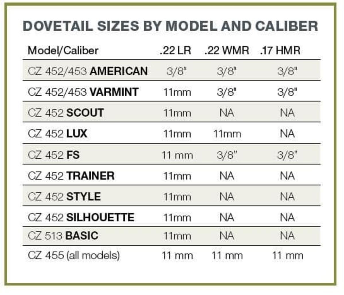 Made for the CZ455 (And some CZ452s, check the chart for further information). Fitting on the dovetail of your rifle, sliding over and then locking down with the grub screws (Provided) for a secure fit.