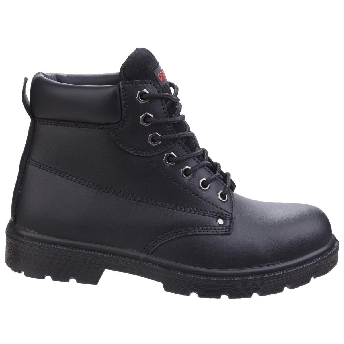 Classic black safety boot crafted with water resistant smooth leather upper, steel toe, anti-penetration steel midsole and ANTISTATIC dual density PU outsole