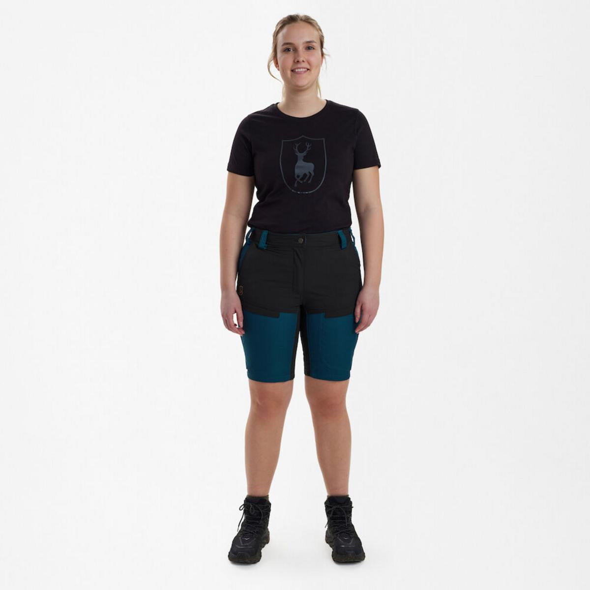 On safari or walking your favourite trails, the Lady Ann shorts are lightweight and breathable with added stretch for greater freedom of movement. Carrying the Deerhunter Teflon coating make the Lady Ann shorts both waterproof and breathable, two essential components for a summer of outdoor adventure. With an elasticated waist and strategically placed pockets, the Lady Ann Shorts are a great choice for versatility, durability and performance.