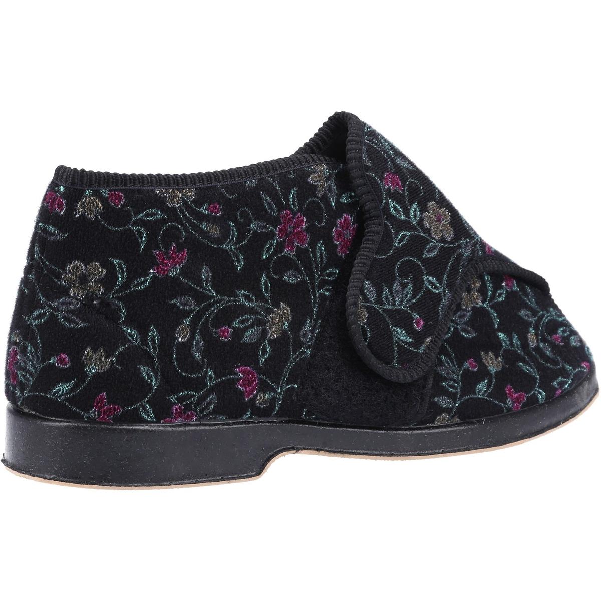 Super cosy easy touch-fasten womens slippers from Great British Slippers. The elegant floral print uppers open almost to the toe for easy entry and simply touch fasten. An adjustable design to accommodate for swelling. Machine washable at 30 degrees.