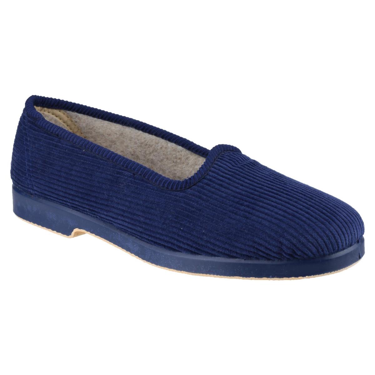 Women's traditional corduroy slippers crafted with a soft textile upper and opening. Luxury faux microfibre fur lines this slipper and a foam layered foot bed cushions the feet. Lightweight and flexible vulcanised rubber outsole.