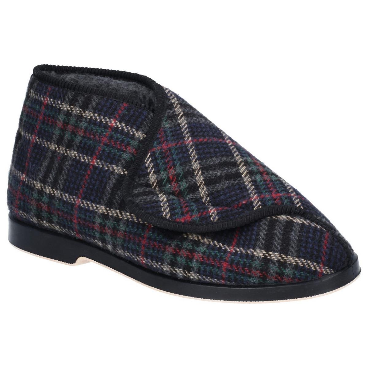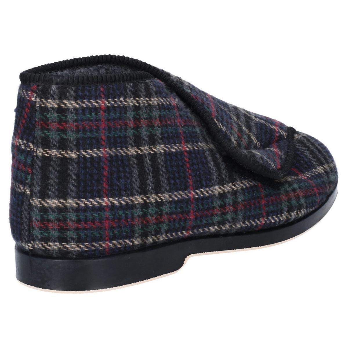Super cosy easy touch-fasten mens slipper bootees from Great British Slippers. The classic tartan print uppers open almost down to the toe for easy entry and simply touch fasten. An adjustable design to accommodate for swelling.