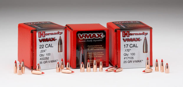 With its combination of proven materials, innovative design and streamlined profile, the Hornady® V-MAX® represents the pinnacle of what a specialized varmint bullet can achieve, offering straight-line trajectories, enhanced accuracy, dramatic expansion and explosive fragmentation at a wide range of distances and velocities.