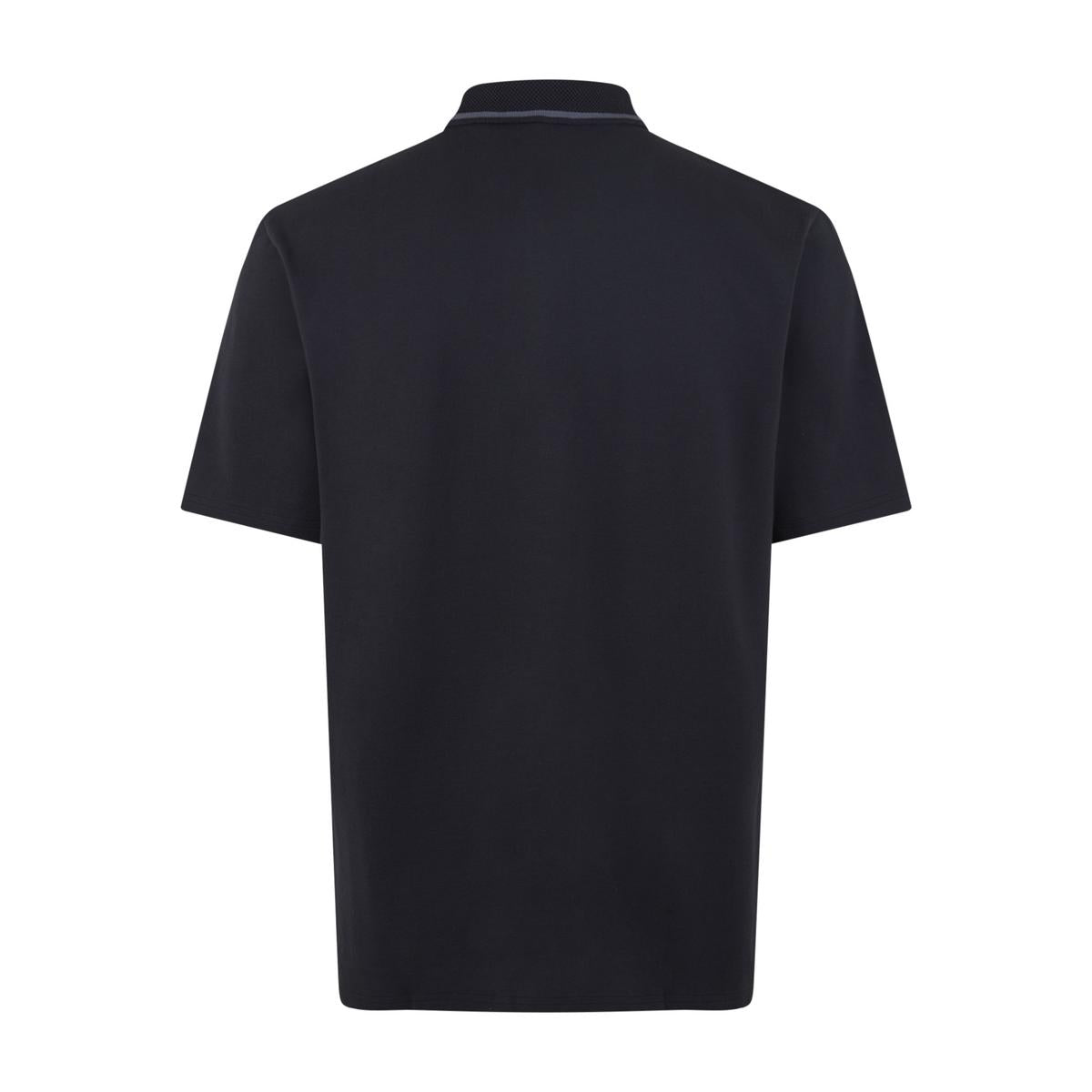 It features a fully fashioned collar, a branded collar trim and a classic three-button placket.