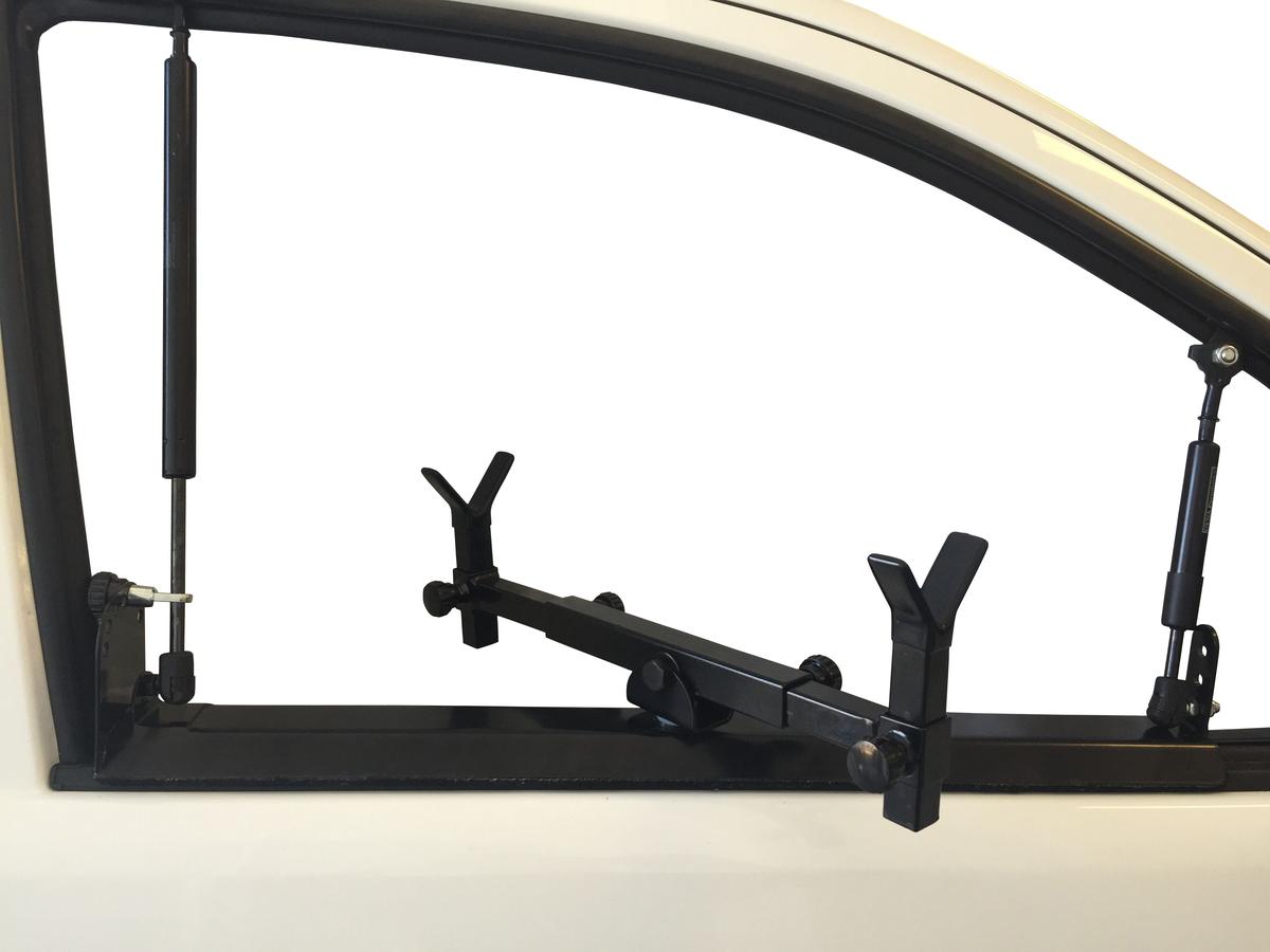 Bench rest accuracy from the comfort of your car. This innovative shooting rest from Australia is pinned securely within the window opening by two gas rams, the entire rest can be popped in and out in seconds, no nuts, no bolts. The rifle is then cradled at two points within a rotating and pivoting platform, so manoeuvrable the user can track targets with ease and take shots with pinpoint accuracy. With straps to hold the rifle in place to prevent any movement whilst in transit.