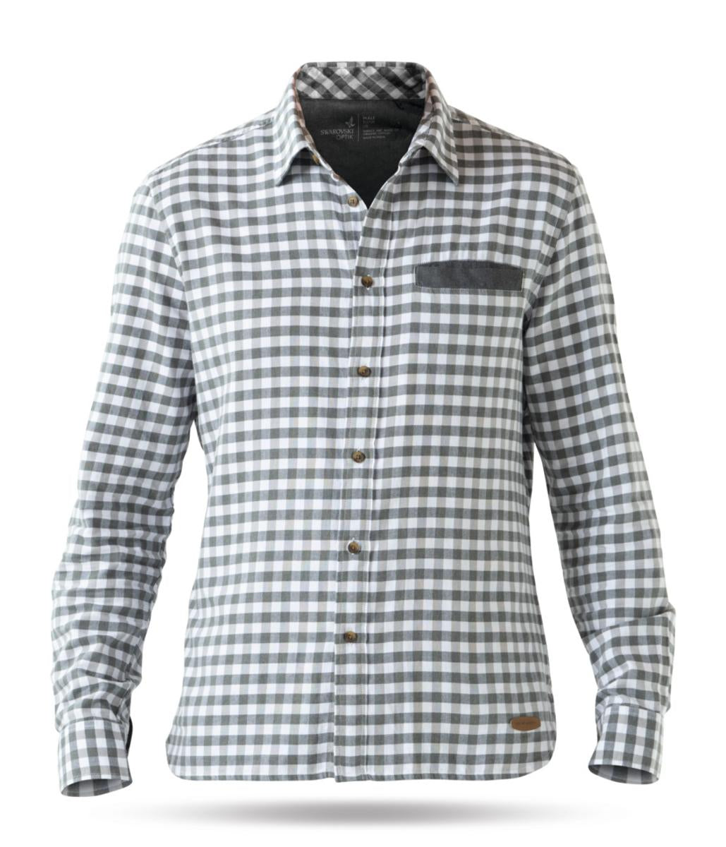 The gray, green, and white plaid pattern is an ideal look for everyday wear or outings in the world of nature.
