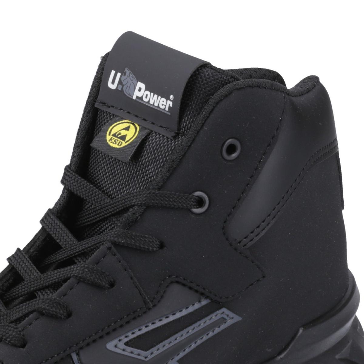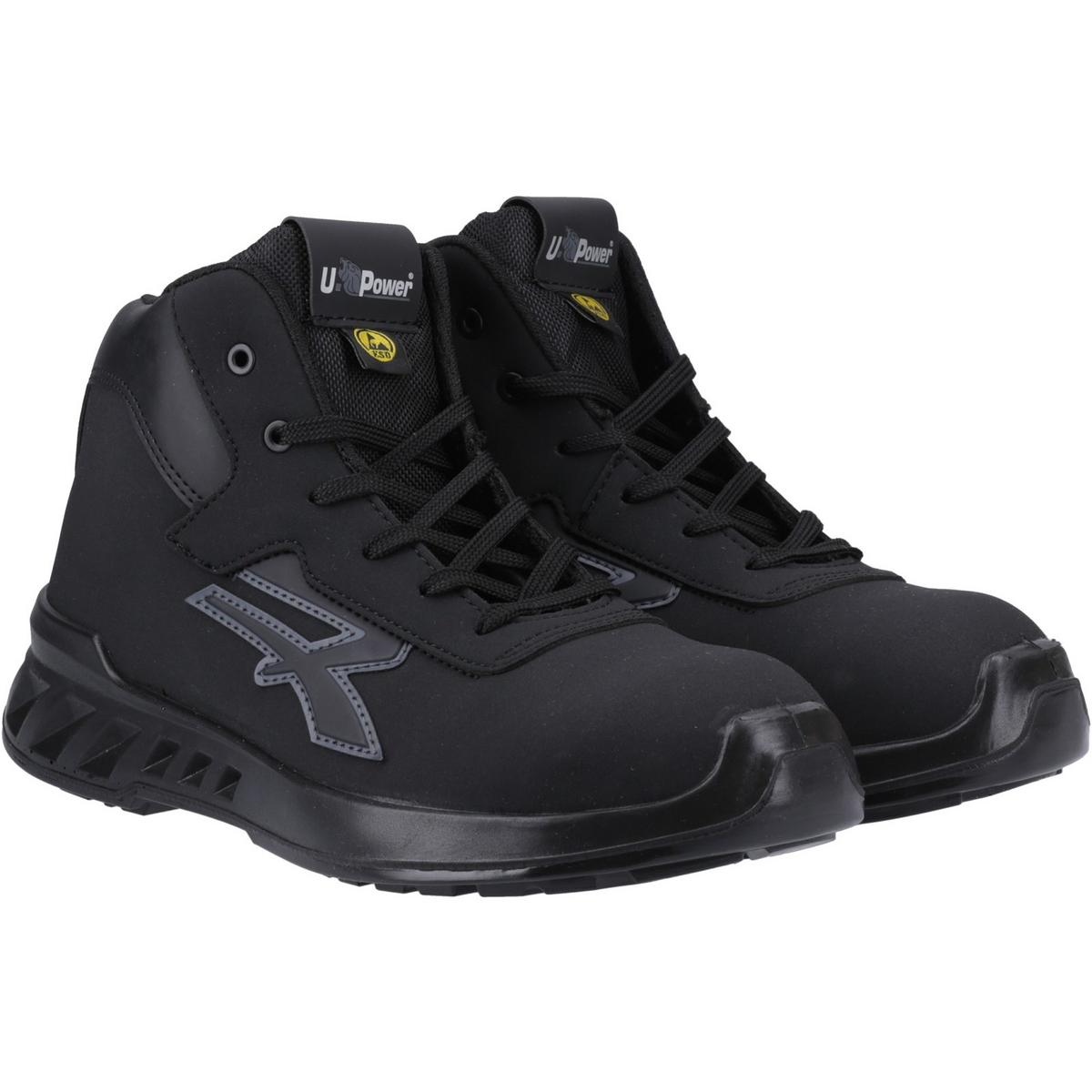 High-top safety shoes with light aluminium Airtoe toecap and new generation abrasion-resistant, oil-resistant, non-slip and anti-static PU compound sole.