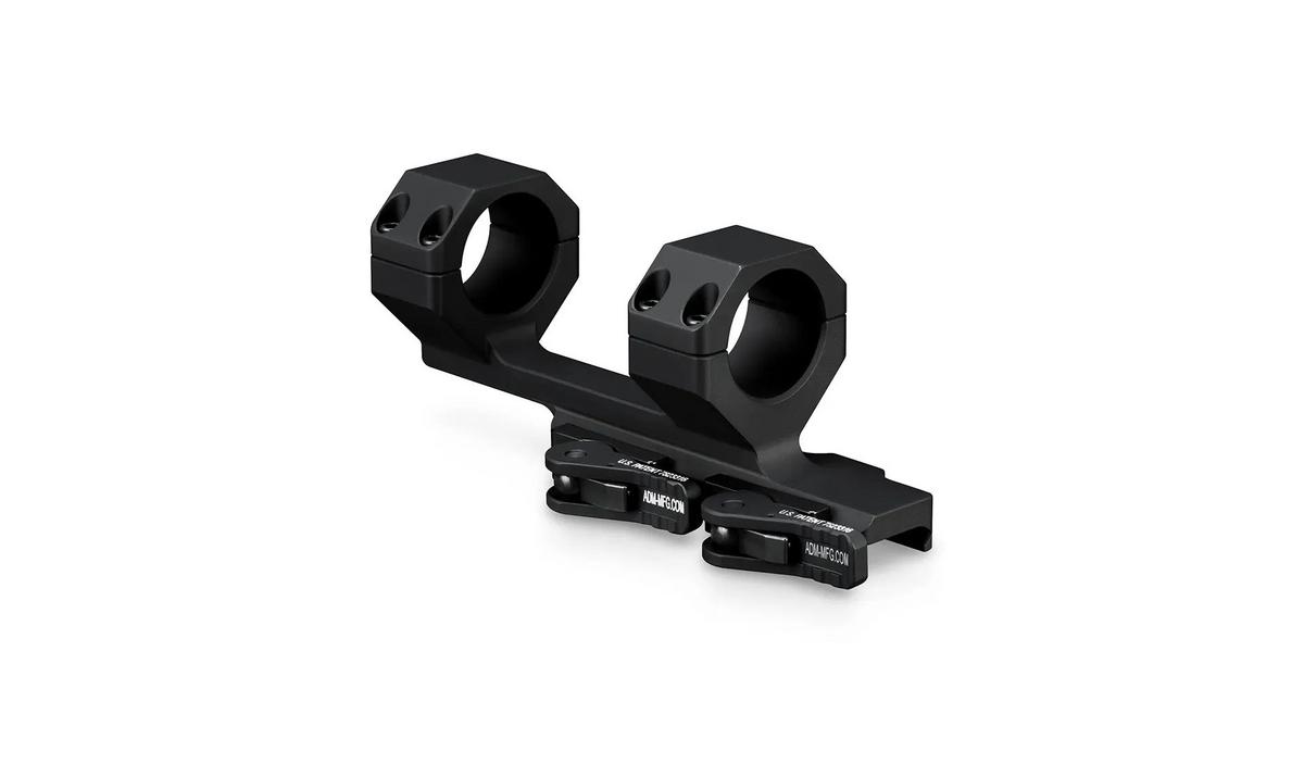 This quick release cantilever mount is designed for mounting telescopic sights with 30mm tubes onto a flattop style AR-15 rifle. The offset of this cantilever mount positions the scope in a forward location, providing correct eye relief and head placement when used on an AR-15.
