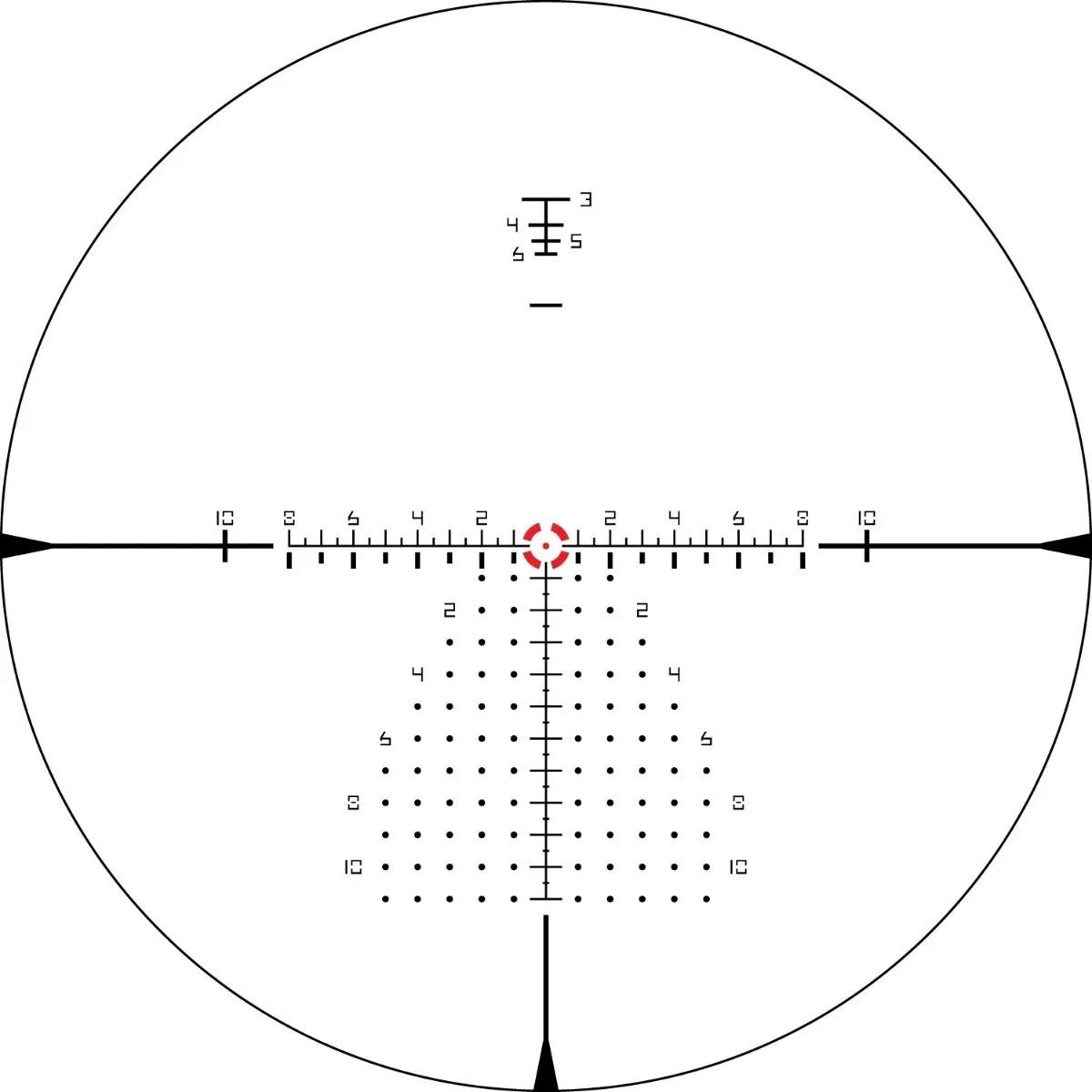 The EBR-9 (Enhanced Battle Reticle) is a hashmarked ranging reticle using MRAD based subtension lines for ranging, holdover, and windage corrections.