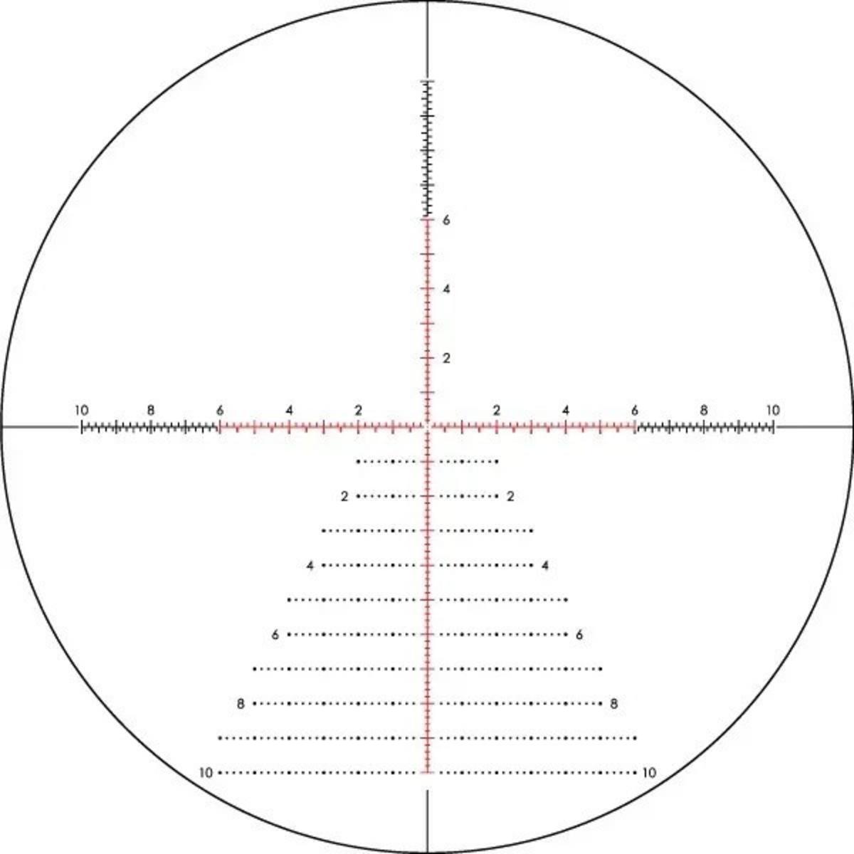 Packed with useful subtension data for long-range shooting , the EBR-7D is a hashmarked, ranging reticle available in the first focal plane. A windage tree in the lower two quadrants is perfect for fast follow-up corrections for both wind and elevation. The cross-plex illumination allows for better usability at lower magnification.