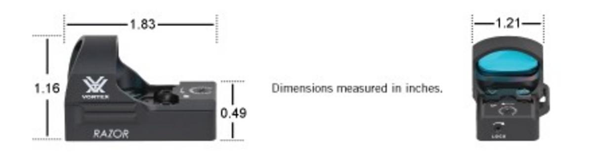 The high-end Razor red dot is an open-top reflex sight built for top-tier performance and incredible versatility. The large, clear and crisp window provides edge-to-edge sharpness with a wide field of view and is protected by a thick and durable aluminum housing. Dot size is available in 3 MOA or 6 MOA for your choice between a more precise aiming point on a rifle or one that’s extremely quick to acquire on a handgun. Side-load battery tray makes for quick battery changes without removing the sight from your firearm. A great fit for rifles and shotguns. Rugged and durable, the Razor comes in at 1.3 ounces (2.4 ounces with its included, low Picatinny mount).