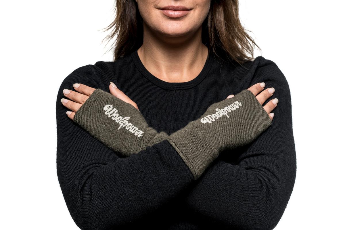 Wrist gaiter with the Woolpower logo knitted into the top side. 18 cm long.