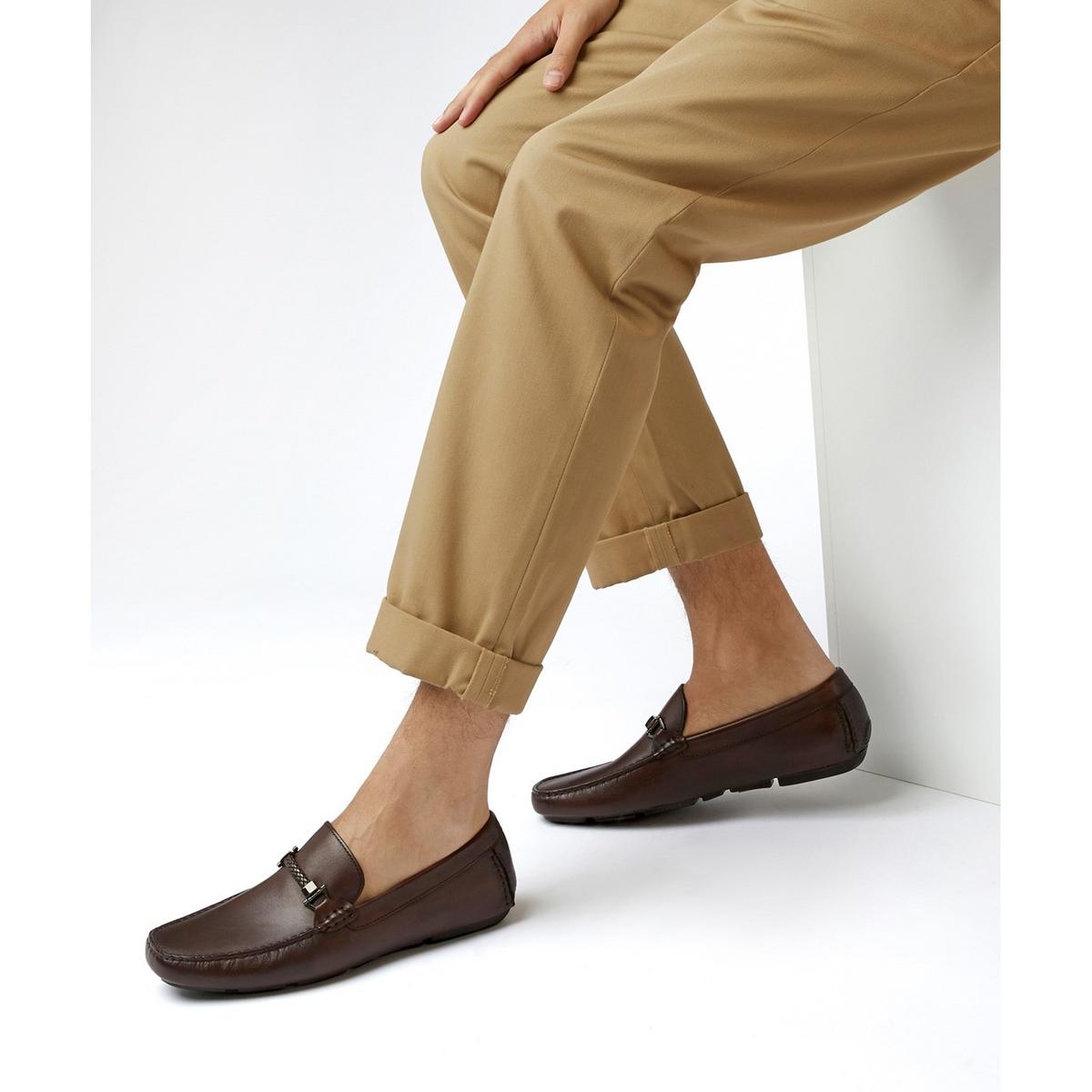 A masterclass in style and charm. A classic pair of drivers finished with refined hardware and woven trims. These moccasin-style shoes feature a pebbled sole for an unrivalled grip.
