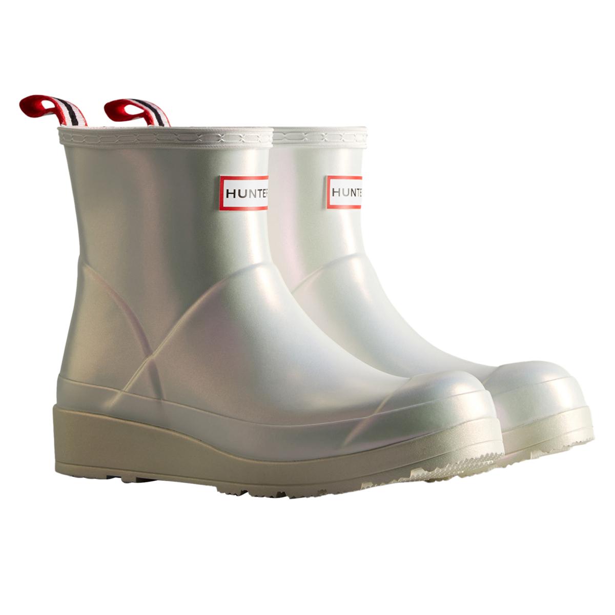 The Hunter Nebula features two-tone iridescent finish that shimmers through metallic shades as it moves in the light. The Play Boot blends playfulness and practicality.