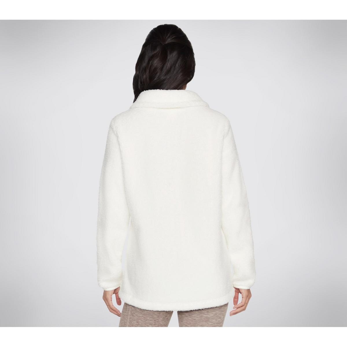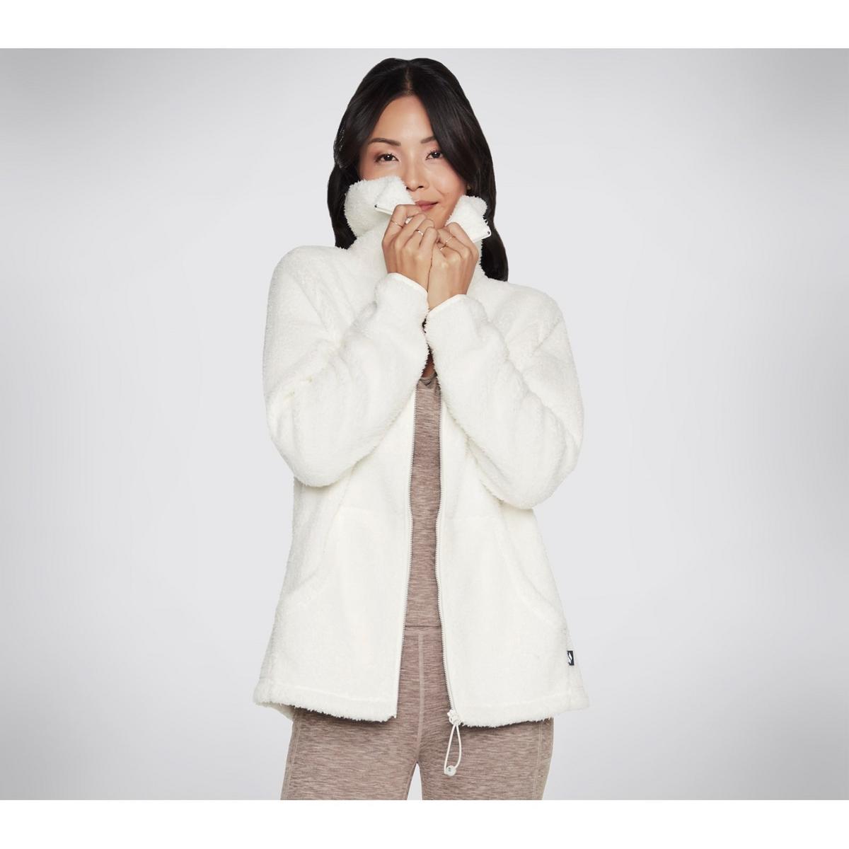 Stay warm in snuggly comfort with the cosy Skechers Diamond Glacier Jacket. Designed with our signature Skech-Sherpa fabric in a relaxed silhouette, this jacket features an oversized fold over mock neck, split kangaroo pockets and a zip front closure