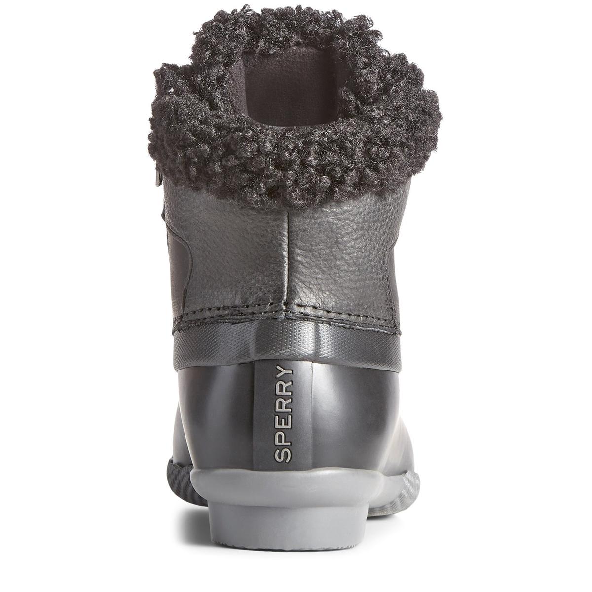 Water-resistant leather shaft with faux fur trim and rubber duck shell