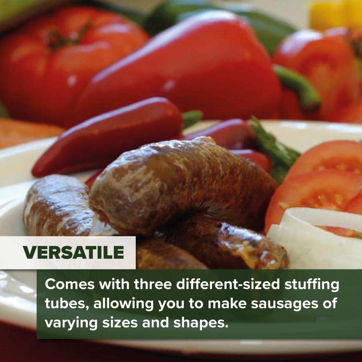 Versatile: The stuffer comes with three different-sized stuffing tubes, allowing you to make sausages of varying sizes and shapes. It can also be used to stuff other types of foods, such as meatballs and dumplings.