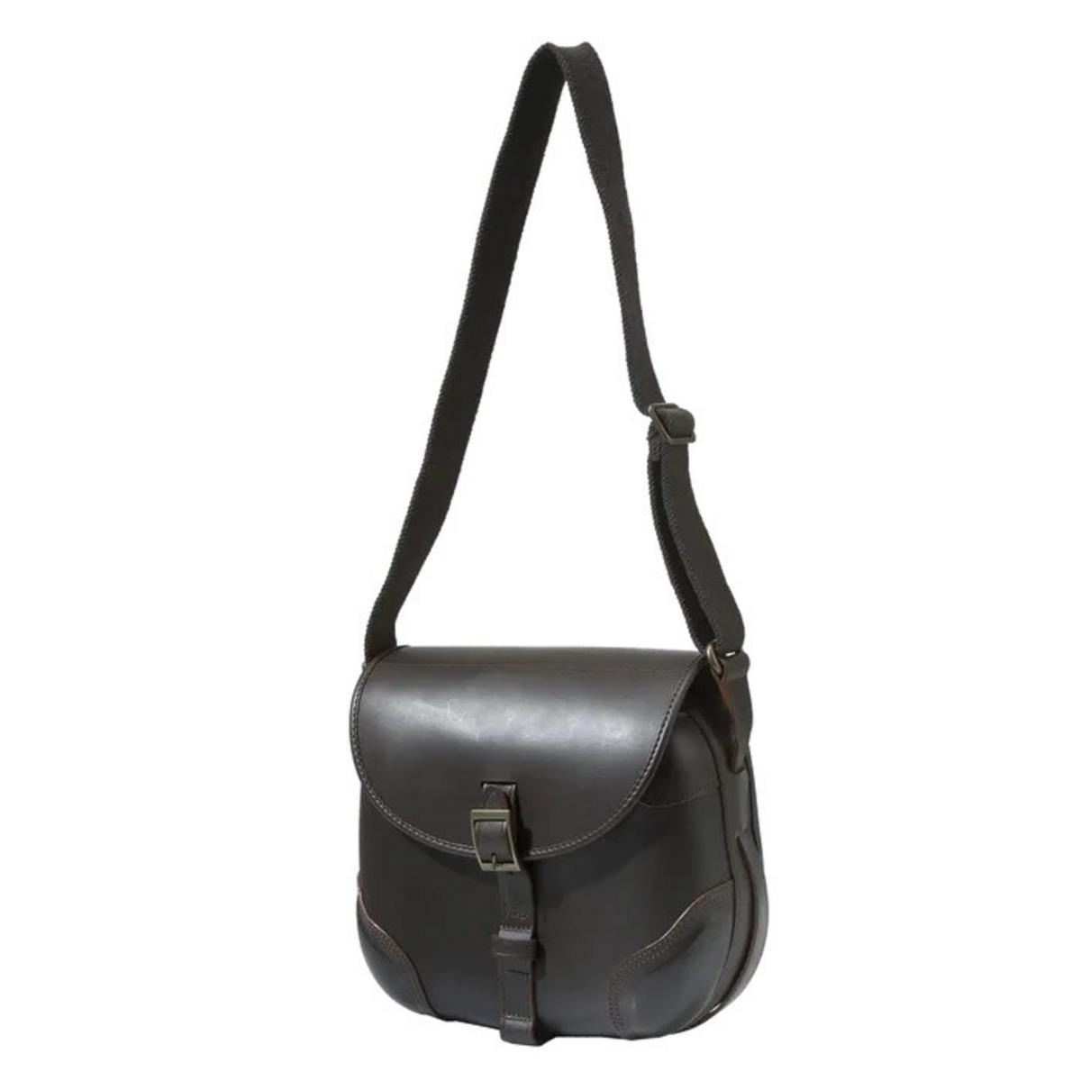 Genuine Italian leather bag to hold up to 100 cartridges, with polycotton shoulder strap.
