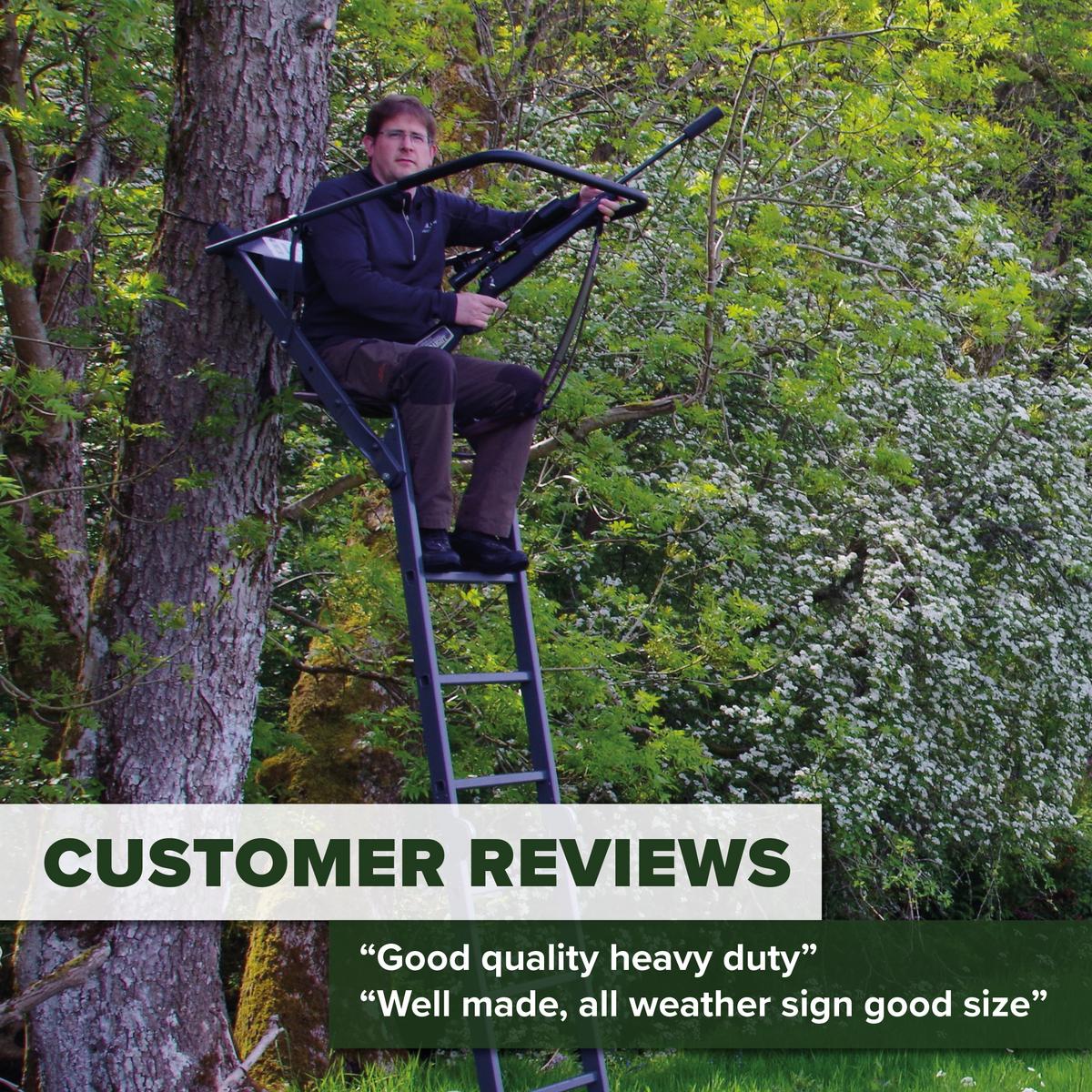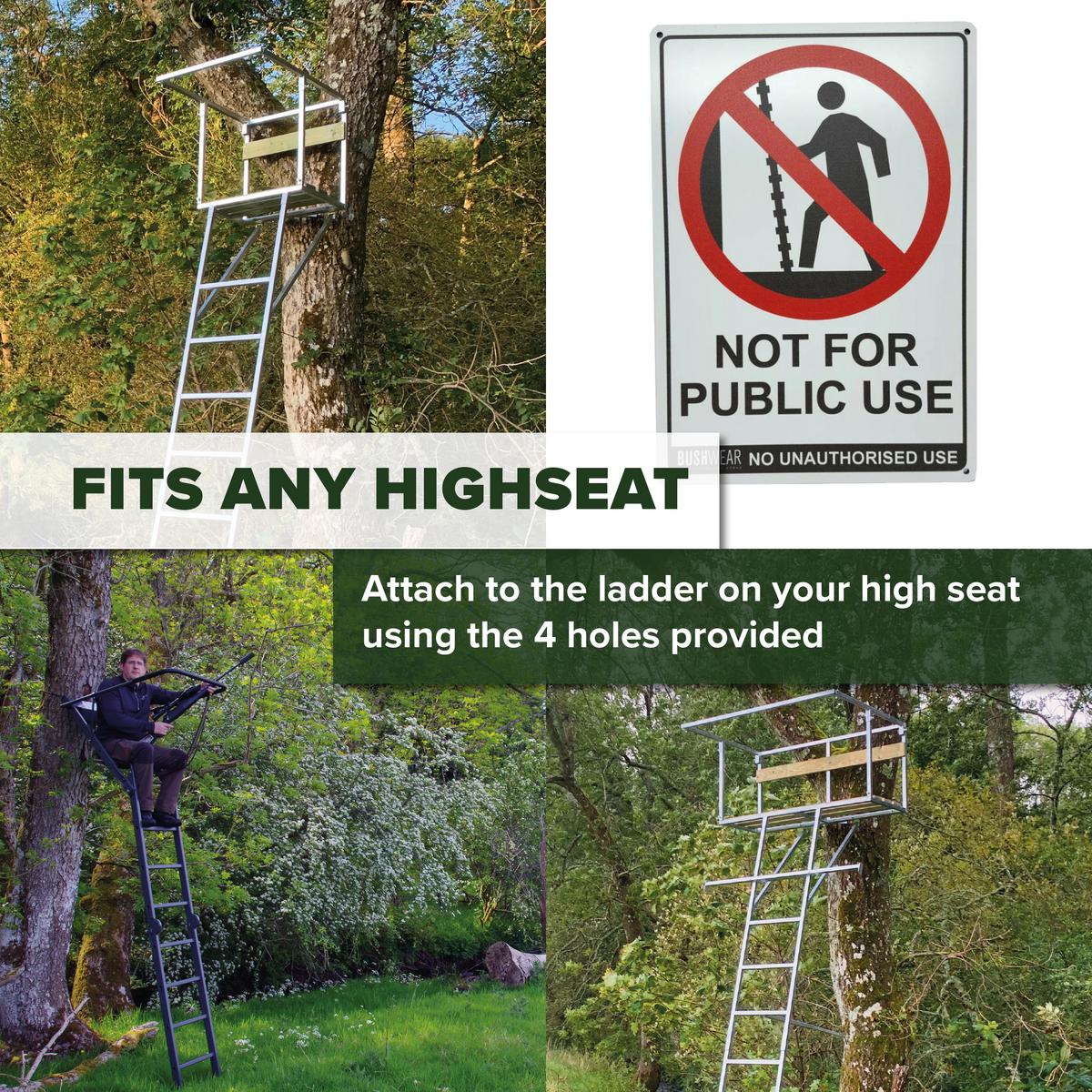 Whether you manage land, operate shooting estates, or simply want to prevent unauthorised public use of your elevated hunting platforms, this sign is an effective and discreet solution. The durable metal construction ensures it will remain in place and legible in outdoor environments throughout the year.