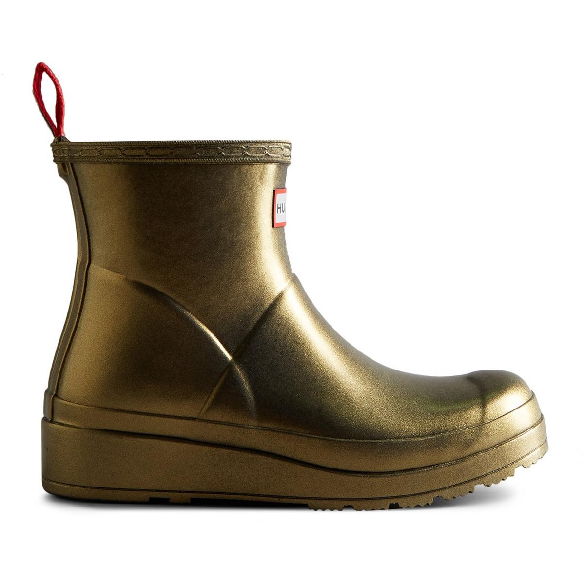 The Hunter Nebula features two-tone iridescent finish that shimmers through metallic shades as it moves in the light. The Play Boot blends playfulness and practicality.