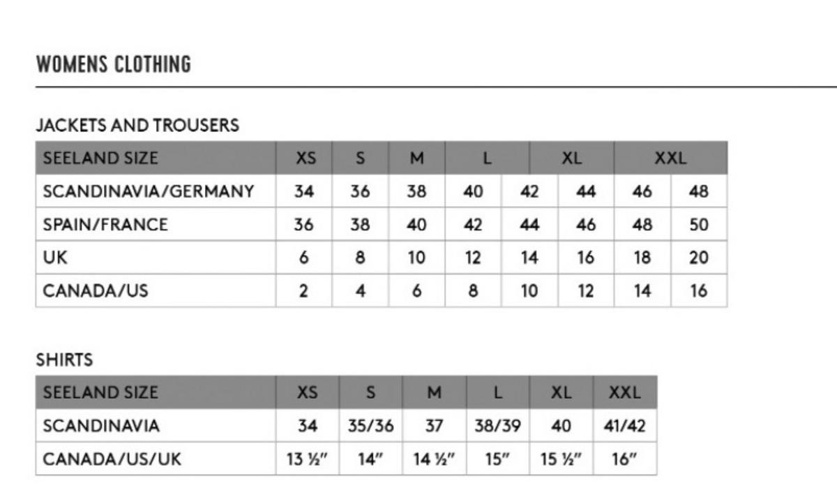 | UK | 6 | 8 | 10 | 12 | 14 | 16 | 18 |