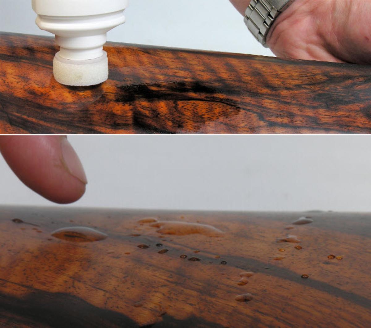 STOCK SHIELD contains no waxes or silicones, so it will not block the pores of the wood and this means that conventional stock finishes, such as Napier London Gun Stock Finish, can be applied at any time without the need to remove STOCK SHIELD, this is very important as using preparations such at Bees Wax for example, renders the stock unable to absorb any Linseed based chemicals, and it then becomes a big job to strip back and start over.