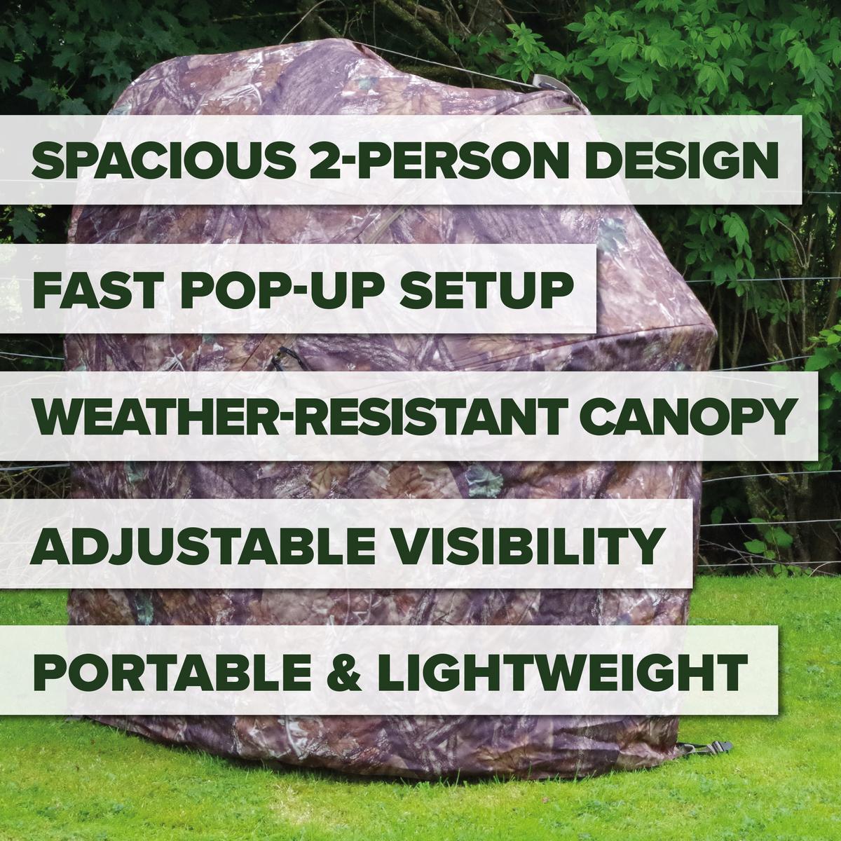 - Fast Pop-Up Setup – Deploys in seconds, with no tools required—perfect for mobile hunts and quick relocations.