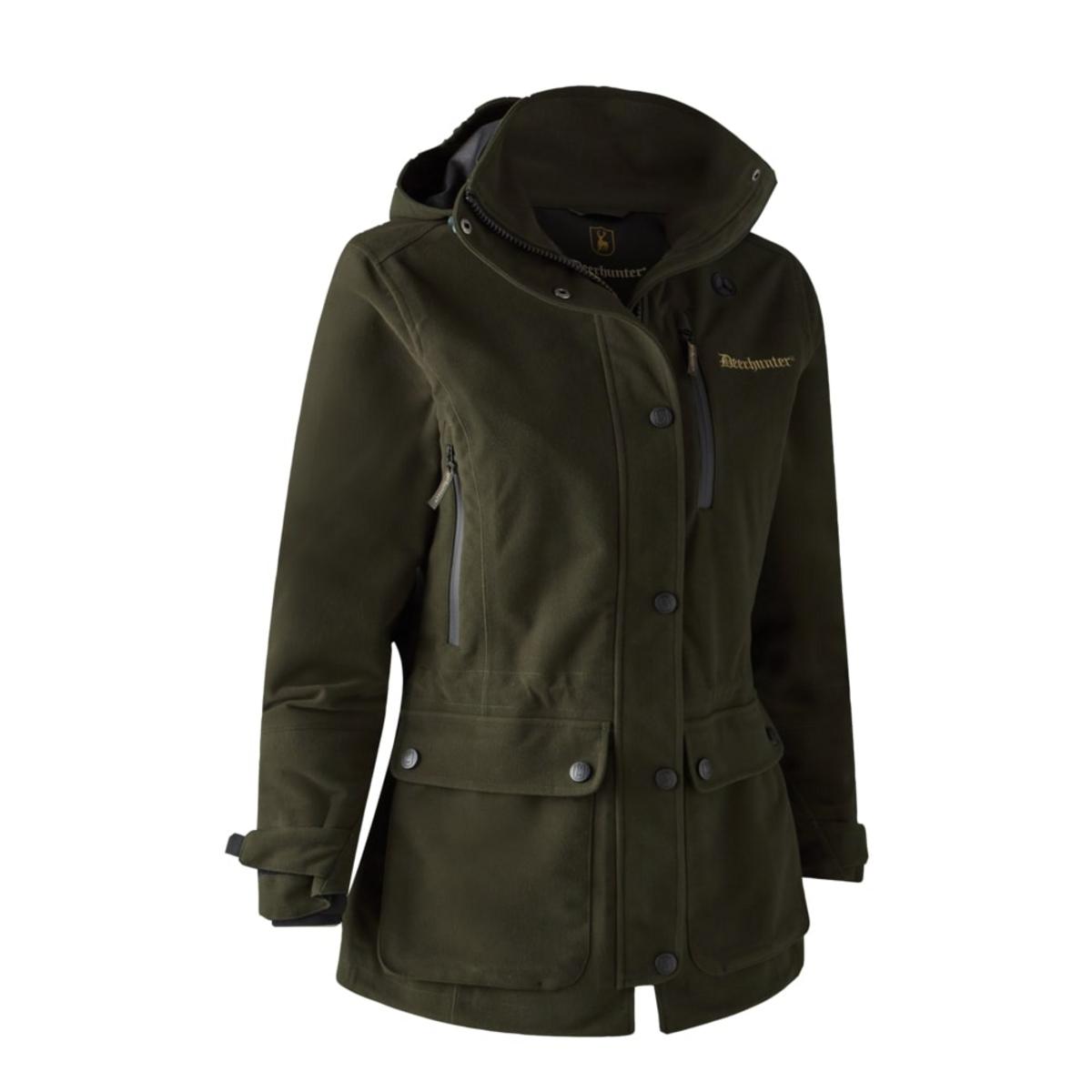 The Lady Gabby jacket is the female version of the award-winning Pro Gamekeeper jacket. This jacket is the answer to all your autumn and winter expeditions. The Lady Gabby jacket is an all-round performer. Climbing a mountain for that once in a lifetime stag you will love the added ventilation of the under arm waterproof zippers along with the two-way YKK zipper for easy access when you are on the move. Off the beaten track for a hike or a stalk the front box pleat pockets with over flap are essential for carrying your equipment or when you’re simply sat glassing your surroundings the two hand warmer pockets will keep your hands cosy. Complete with detachable hood, Neoprene storm cuffs and adjustable drawstring bottom the Lady Gabby jacket exudes an abundance of feminine fit and style with stopping power to protect you against the elements.