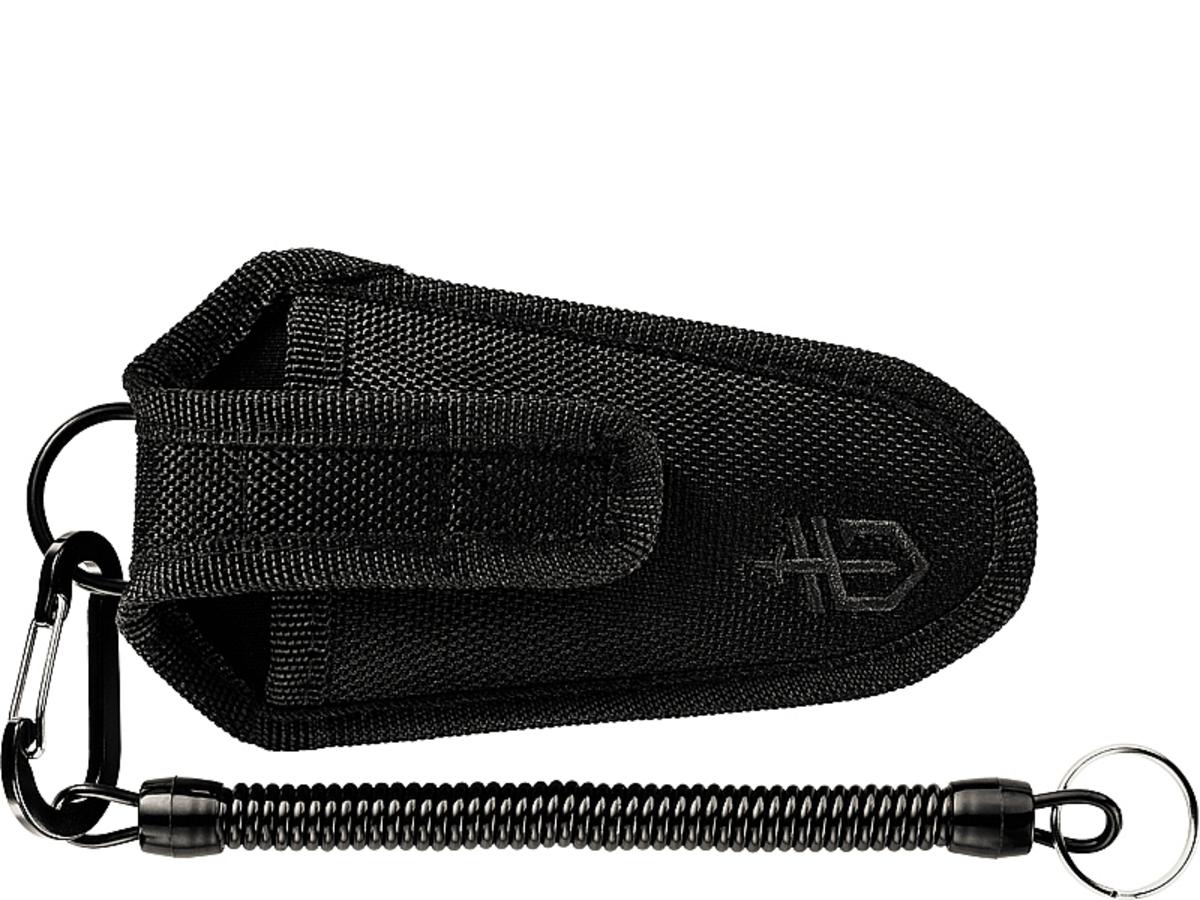 Features multiple tether points for securing the tool by split ring, lanyard, carabiner, etc. Includes a sheath for storage and carrying purposes, designed with a reversible carry belt-loop and built-in d-ring.