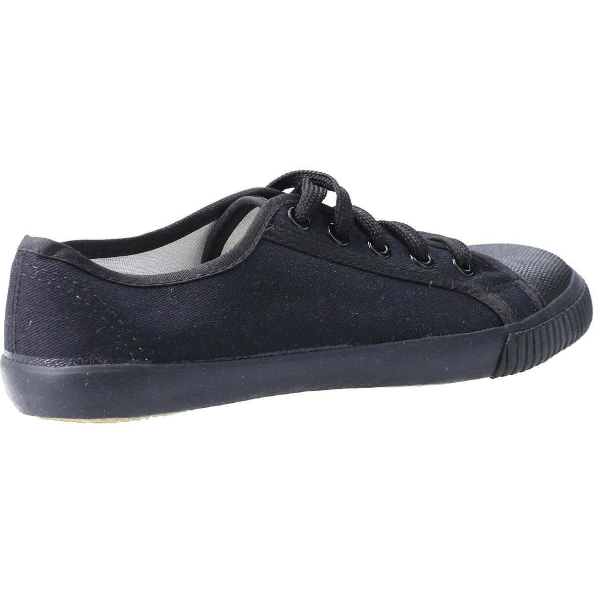 Great value children's plimsoll with traditional canvas uppers and non-marking rubber outsole. Securely fitted with adjustable lace up front and cord lacing. The ideal school shoes for PE and indoor gym halls.