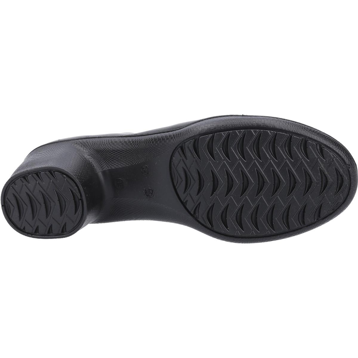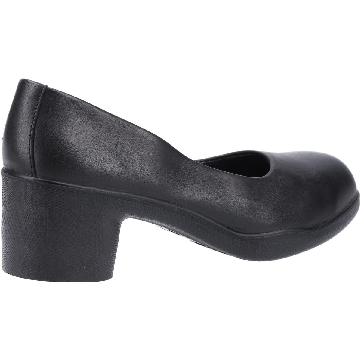 Women's steel toe slip-resistant safety shoe in classic heeled court shoe design, crafted with a luxury leather upper and leather padded insole for comfort. Transitions easy from the store room to front of house.