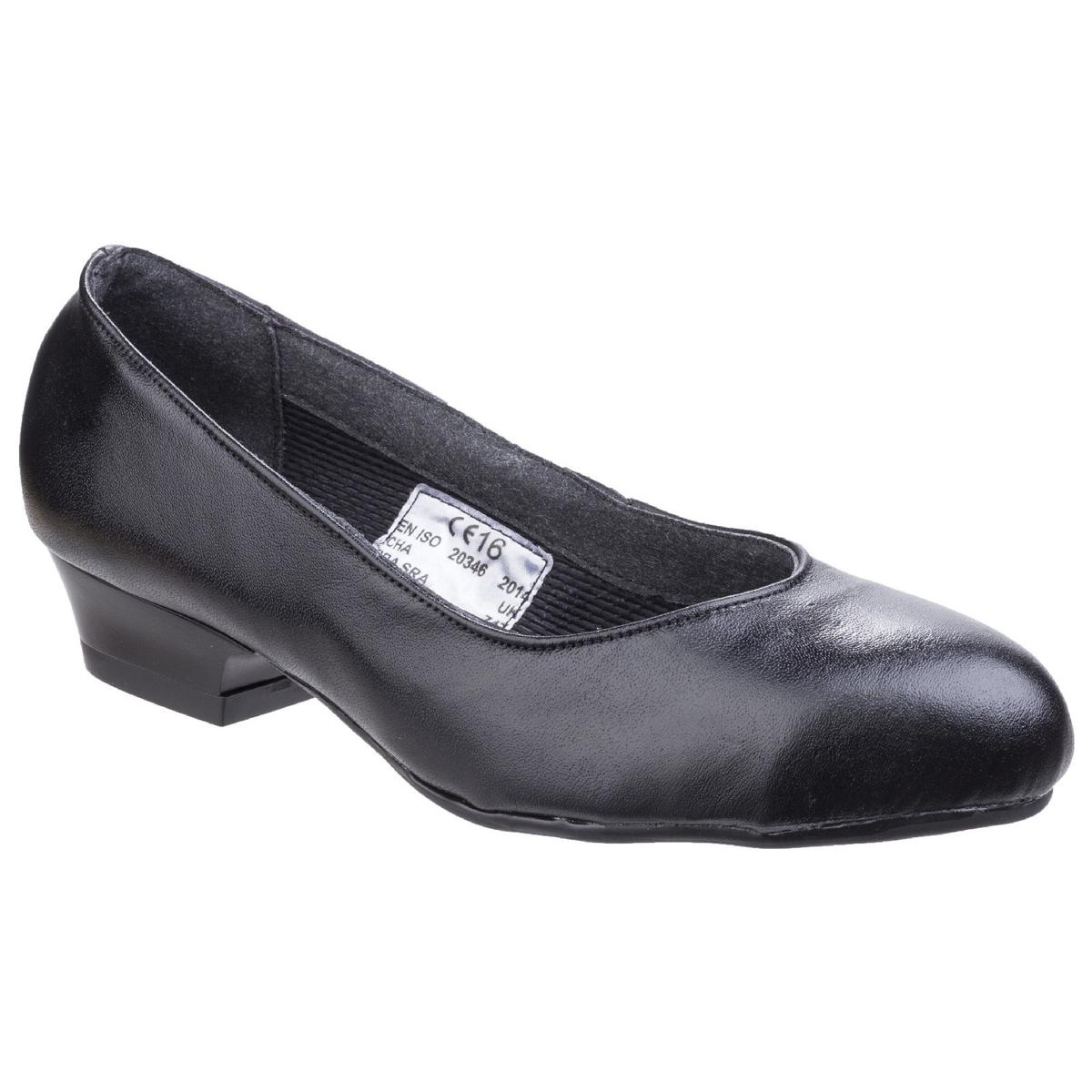 Women's lightweight protective court shoe with 100 joules impact and compression resistant toe cap. Low 38mm heel ideal for uniform and office wear.
