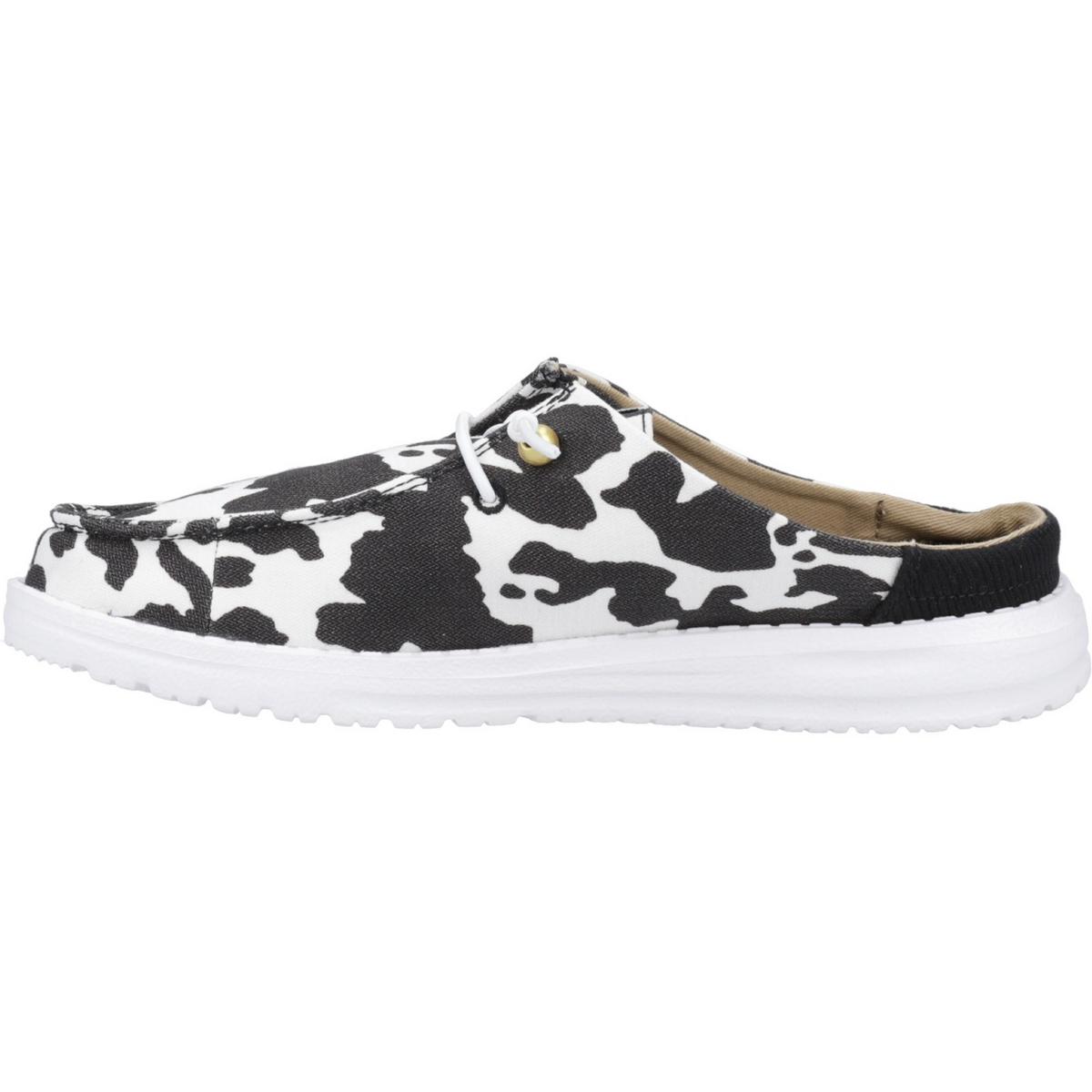 HEYDUDE Wendy Slip Classic Mule White/Black Cow Print