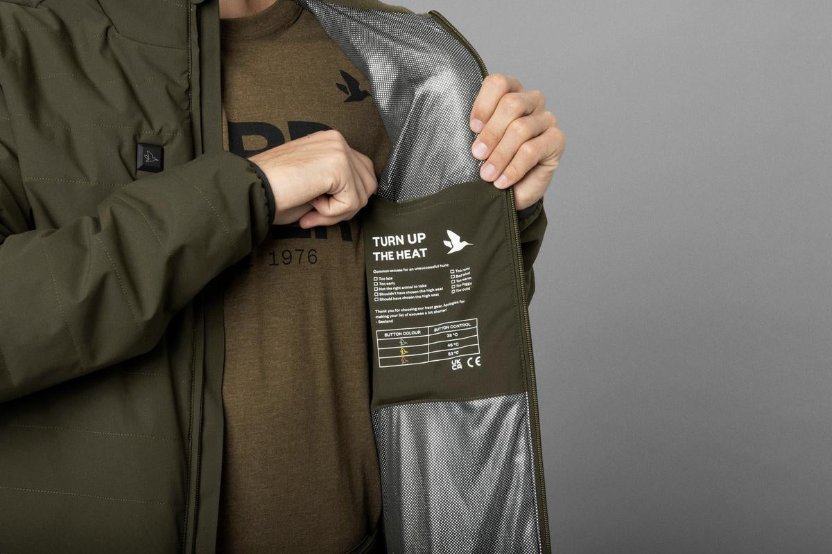 Turn up the heat! Elevate cold-weather comfort with the Celsius Heat Jacket. Featuring back and chest panel heat technology, this jacket offers an adjustable temperature button (Not App) with three distinct heat levels. Enhanced by an insulating silver film lining and synthetic fibre insulation, it ensures optimal warmth retention. Crafted from 100% polyester with stretch panels for mobility and zipped pockets for utility. Embrace the chill and take control of your warmth. NOTE: Requires a separate battery pack NOT SUPPLIED.