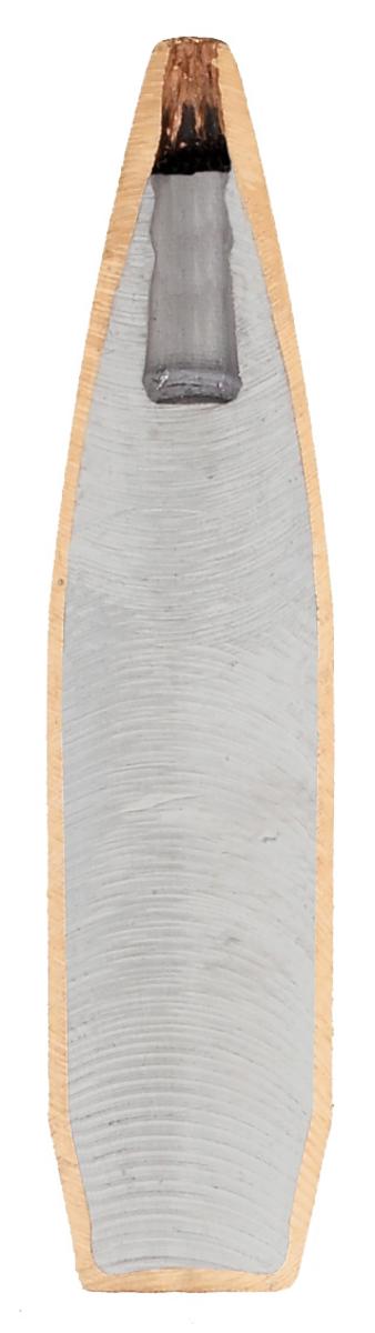 The geometric profile works to produce low drag and flatter trajectories. The secant ogive design also provides the optimum bearing surface for stability in flight and the best ballistic coefficient possible.