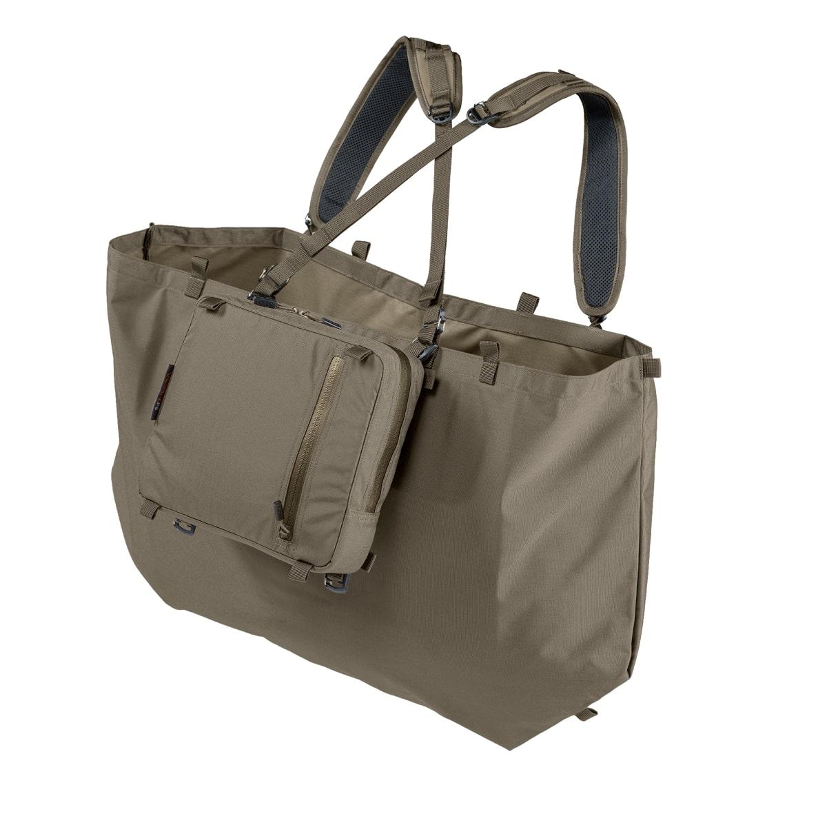 With the 6 liter pouch (P6) paired with a shoulder strap (DS) this creates a lightweight shoulder bag. The 70 liters load bag (L70) folds flat and takes up minimal space in your bag.