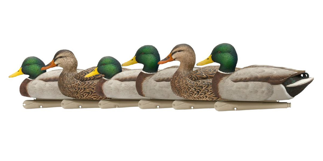 Brutal open water conditions are no problem for these mallards. A combination of high-head and low-head postures authentically replicate the natural behavior of active mallards. Ultra-realistic paint schemes combine with the ultimate in paint adhesion and durability for the final word in floating mallard decoys. All Topflight decoys feature an innovative weight-forward swim keel. Simply snap the line through the swim clip to give decoys natural motion on the water.