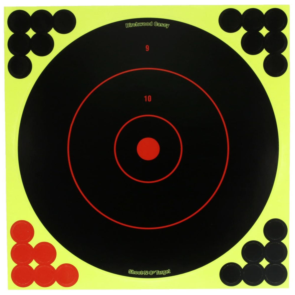 The Birchwood Casey Shoot-N-C Bullseye Targets with Resealable Pack revolutionized the way shooters think about shooting targets when they first came onto the stage. Each Shoot-N-C target has a special composition that allows the shooter to see bullet holes instantly without the aid of spotting scopes or binoculars. When the target is hit, the black coating flakes off, leaving a bright halo effect that is extremely visible. Pasters are available so targets can be reused. These targets are great for long-range rifle shooting - 200 yards and beyond! Greater surface area make them the perfect choice for use with muzzleloaders, shotgun slugs and to show shotgun mattering. Great for indoor or outdoor use and low-light conditions.