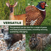 Napier Apex Gambrel - Suitable for all UK Species. Can maintain a suitable height for any species. Once on the Gambrel the real advantages become apparent. You immediately you have full control of the beast, it can bleed it effectively and most importantly it is safe and secure.