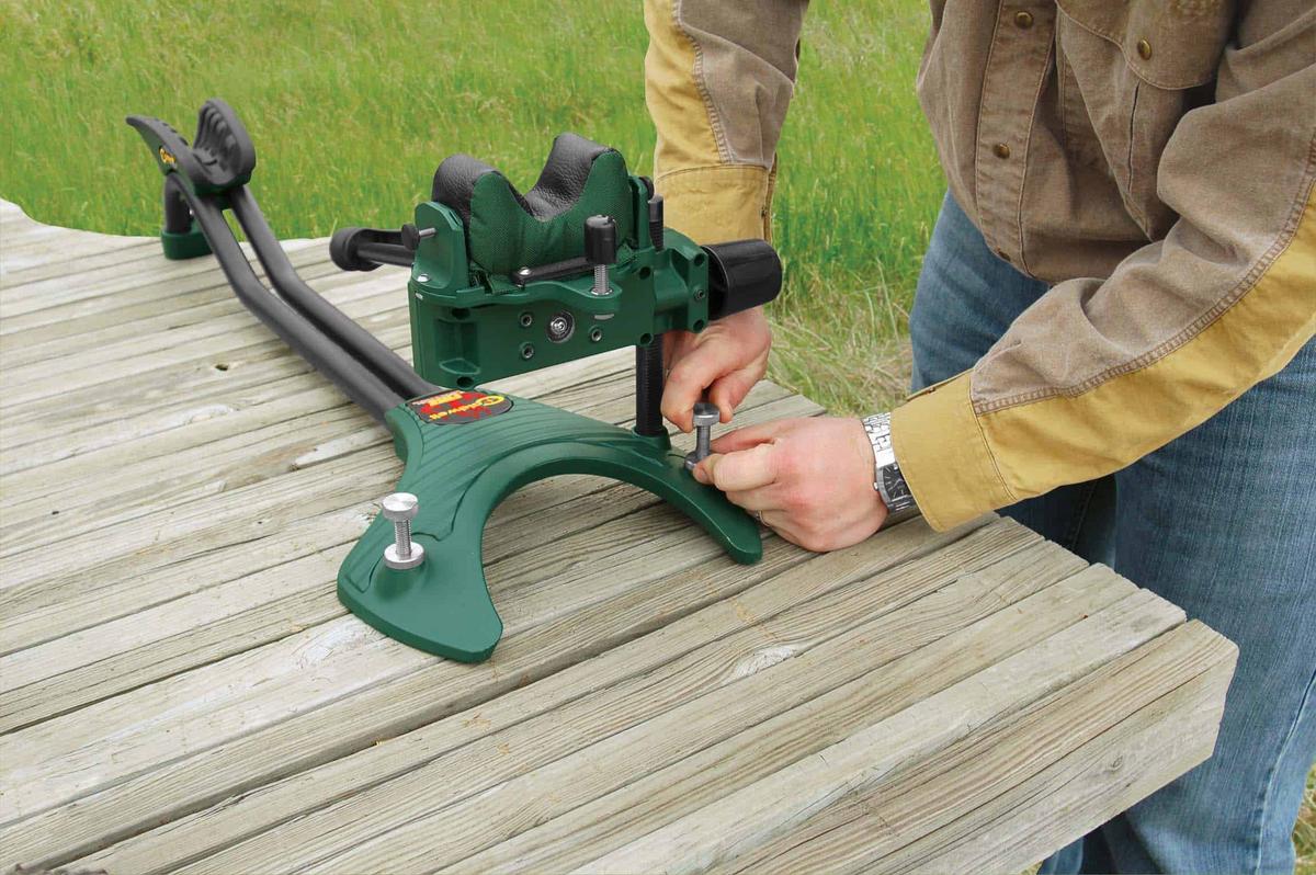 The one-piece design delivers maximum stability and the convenience of fast setup and transport. Dual steel tubes connect the non-marring over-molded rear support to the sturdy cast aluminum front base. Built with all the same features as the Fire Control Front Rest. Approximately 15lbs and 32 overall length.