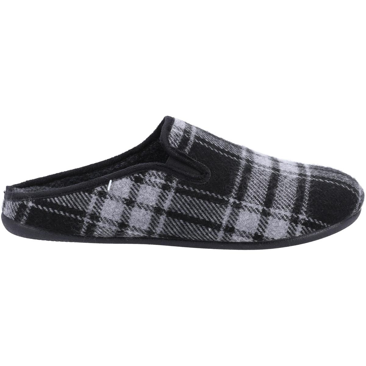 Cotswold Syde Mens Slip On Mule Slipper with check effect textile upper, warm textile lining and a flexible rubber sole.