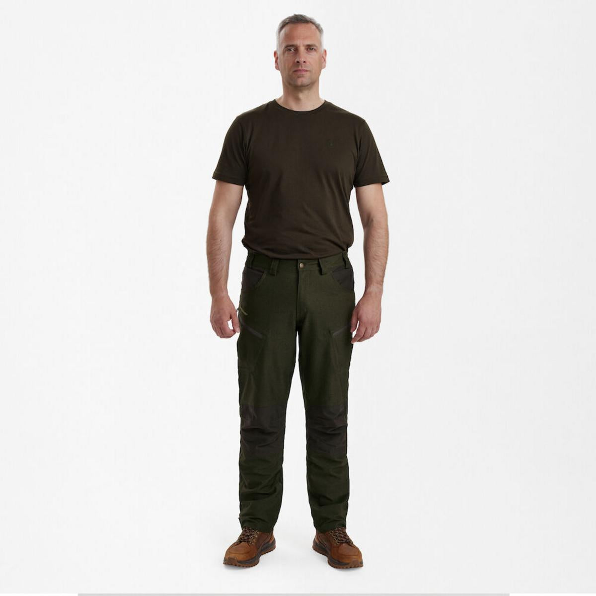 Deerhunter Chasse Trousers feature pre-shaped knees and an elasticated waistband for a comfortable fit and added freedom of movement. Two front pockets and two thigh pockets with zip fastening and a concealed knife pocket provide a plethora of storage options for all your daily essentials. Complimenting the style and fit of the Deerhunter Chasse trousers is the single rear pocket with zip fastening and the adjustable velcro ankle strap for the perfect fit with your footwear.